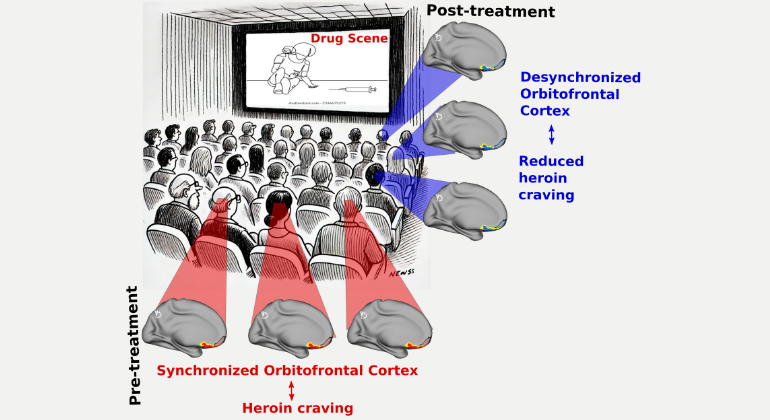 Mount Sinai researchers have found that a brain region that is implicated extensively in value-based decision-making and craving in people with heroin use disorder – known as the orbitofrontal cortex (OFC) – shows synchronized responses biased towards drug content, outcompeting other typical subjects of attention and motivation, in a group of individuals with heroin use disorder who watched “Trainspotting,” the Academy Award-nominated 1996 movie about people who use heroin in Scotland.