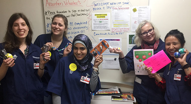 At The Mount Sinai Hospital, patient-related volunteers visit patients and assist staff in both inpatient and outpatient settings.